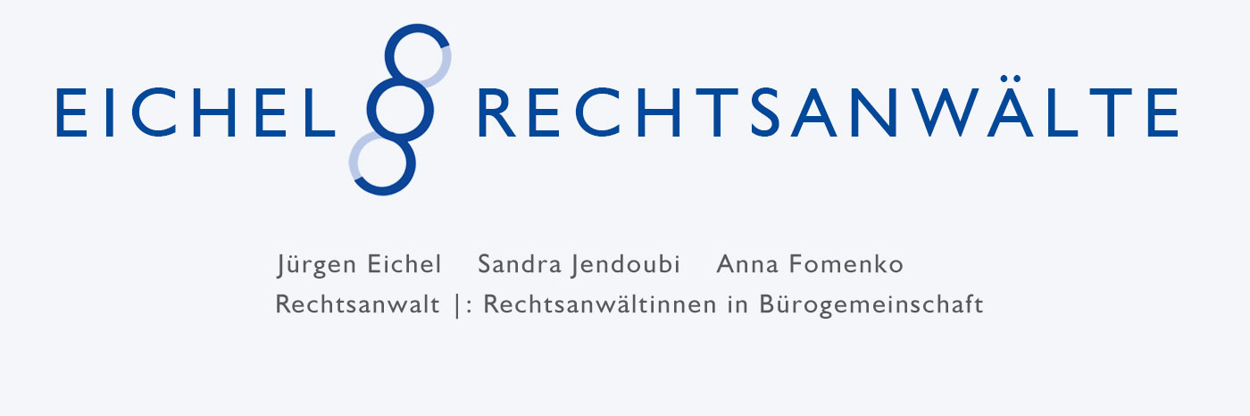 Die Kanzlei EICHEL RECHTSANWÄLTE versteht sich als moderner juristischer Dienstleister mit einem umfassenden Leistungsangebot. Sie besteht aus der eigenständigen Sozietät von Rechtsanwalt Jürgen Eichel und Rechtsanwältin Sandra Jendoubi in Bürogemeinschaft mit Rechtsanwältin Anna Fomenko.